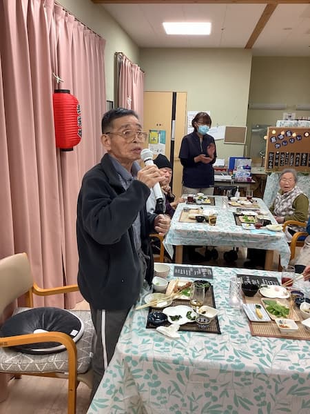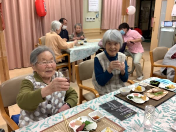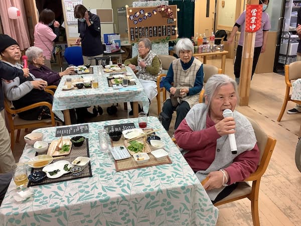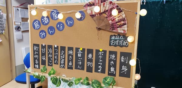 「昨日は居酒屋をして楽しかったよ。カラオケもしたよ」とご家族に説明されていました。楽しい記憶として残り職員もうれしく思いました。これからも楽しい思い出をたくさん作っていきたいと思います。