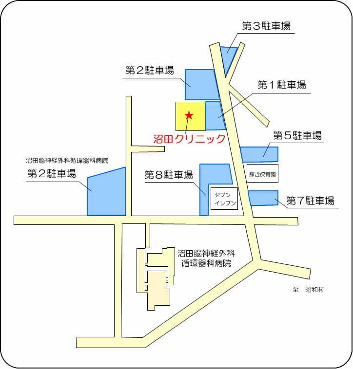 駐車場混雑時は、沼田脳神経外科循環器科病院第2駐車場にも停めることができます。