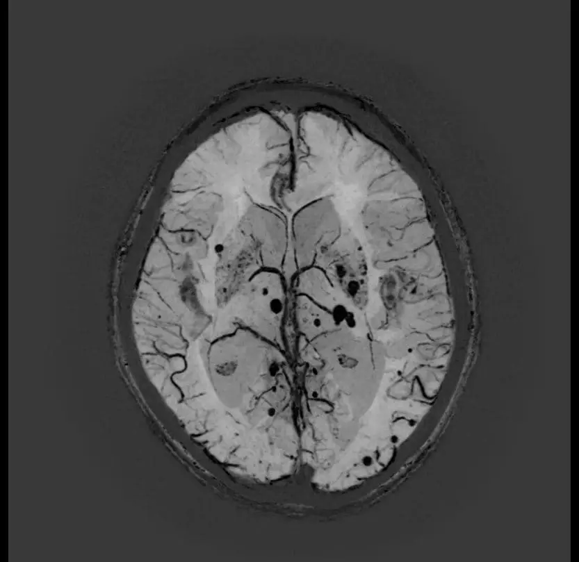 日本語では磁気共鳴画像といいます。強い磁石と電波を用い、生体を構成している水素原子から信号を取り出し、それを画像化する検査です。造影剤を使用せずに、頭部の血管や心臓の血管の撮影が可能です。