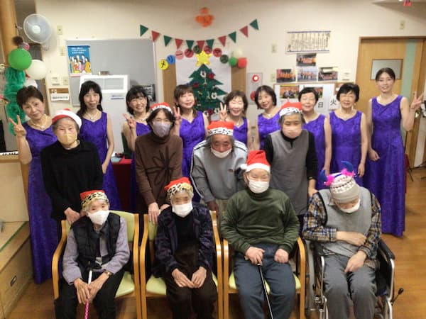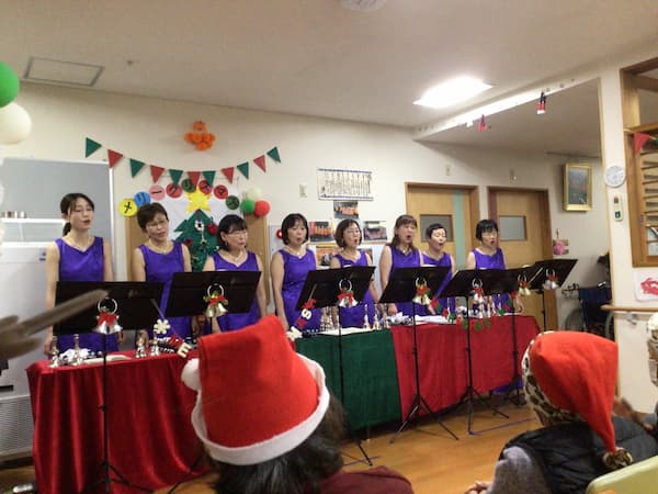 楽器から奏でるメロディーはとても美しく、「ベルコーロ」の皆様が歌われるクリスマスソングはとても素晴らしかったです。利用者様の中には感動し涙する方もいらっしゃいました。「ベルコーロ」の皆様には本当に感謝します。