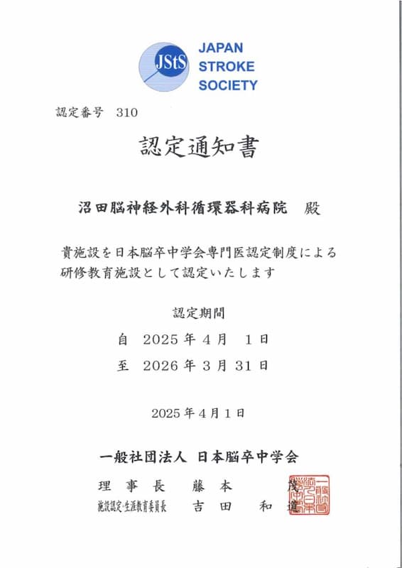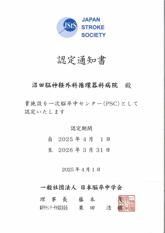 - 日本脳卒中学会認定PSC(一次脳卒中センター)