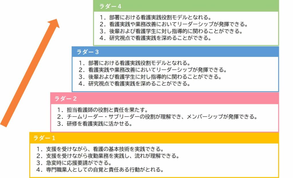 看護専門職としての人材育成のために「クリニカルラダー」を活用した教育を行っています。