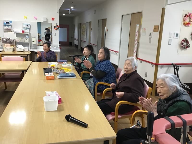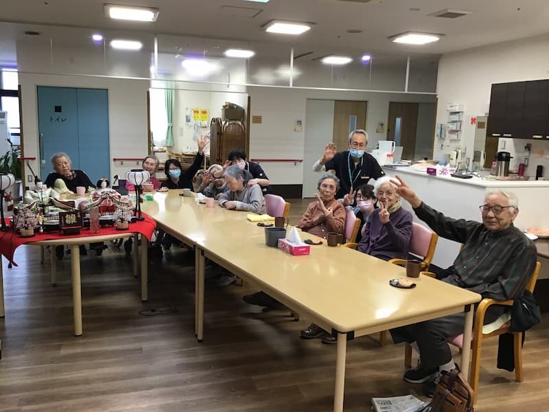 3月はひな祭りということで雛人形を飾らしていただいていました!利用者様からは「すごいね」「奇麗だね」など立派な雛人形で喜んでいました。イベントではひな祭りの由来やクイズ、ひな祭りの歌や春の歌を歌ったりしました!最後に手作りのお饅頭を食べてもらい「美味しかったよ」「饅頭の色が奇麗だね」など笑顔が見られて良かったと思います!