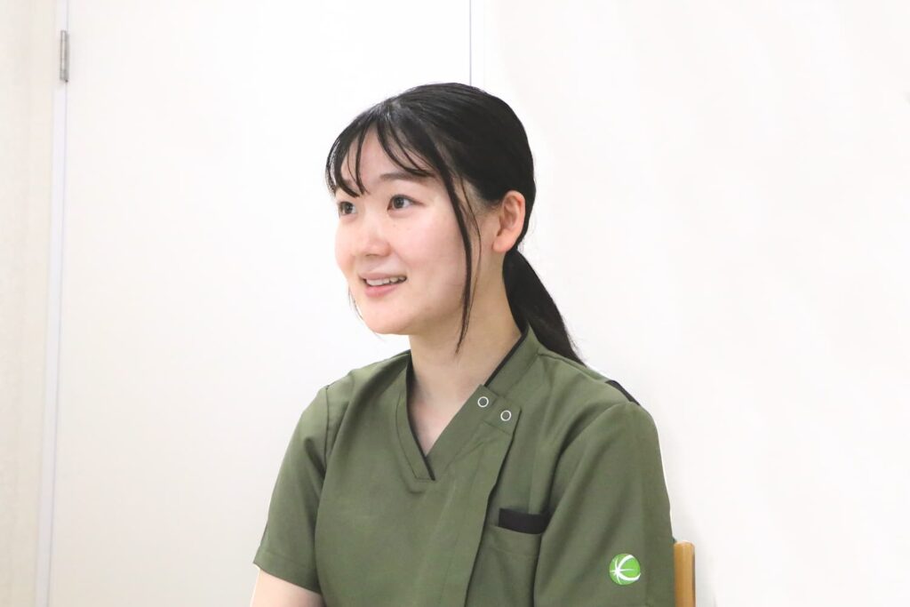 研修や勉強会だけではなく、プリセプターの先輩と定期的にフィードバックするなど新人教育制度が充実しています。また、親身になって一つ一つ丁寧に教えてくださる知識の豊富な先輩方もいます。日々沢山の知識を学ぶことができ、目標に向かって成長できる環境が非常に整っていると思います。まずは来院し、実際の雰囲気や臨床の現場を知ることが一番だと思います。少しでも気になった際は是非見学にいらしてください!
